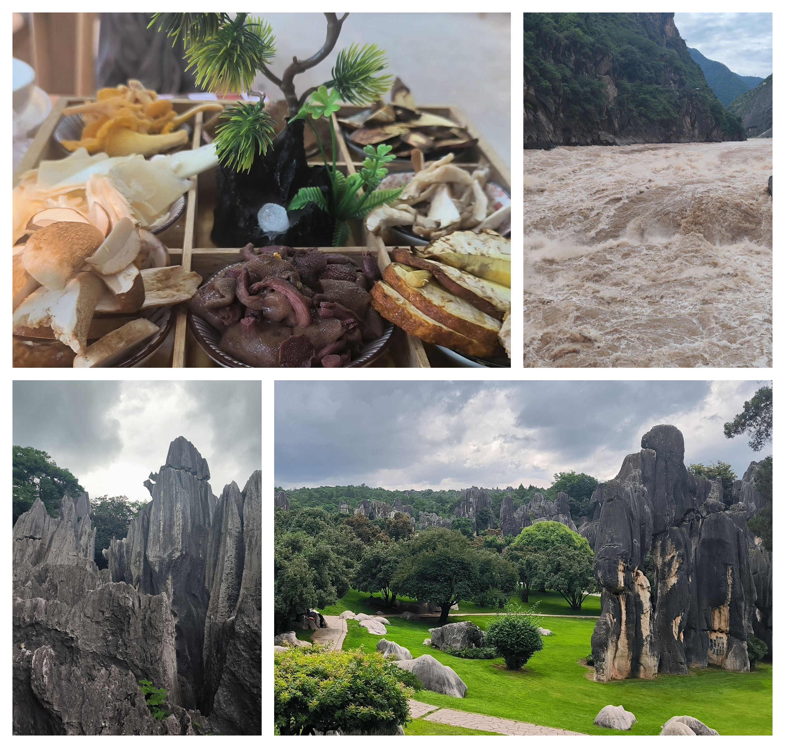 香格里拉段的虎跳峡谷中金沙江激流如银龙翻腾,江水撞击岩石产生的轰鸣声震耳欲聋,趴在观景台栏杆上数浪花。在返回昆明的路上,偶遇楚雄南华县的菌子市场,品尝野生菌火锅沸腾时,孩子们盯着松茸在汤中翻滚,喃喃道:“蘑菇在泡温泉!”。