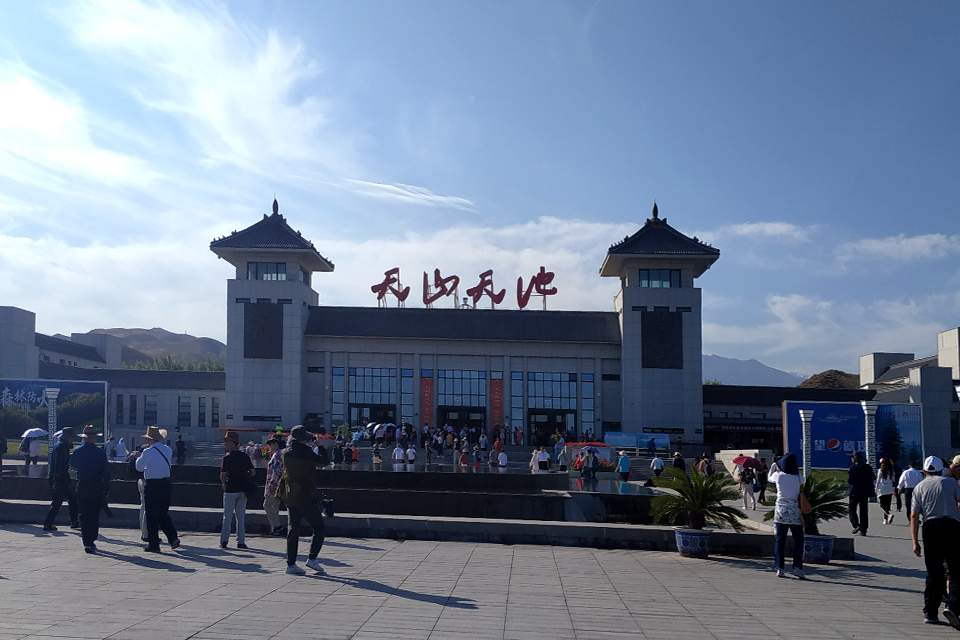 景区的绿色中巴车运行了半小时左右,终于到达了天池岸边,导游根据每个游客的需求会再征求意见是否购买索道票(220元/人)+天池游船票(100元)+西王母娘娘庙(25元)。
