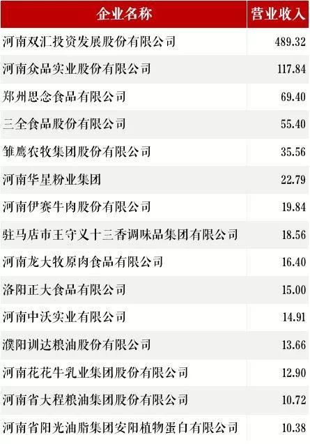 数据来源:2019广东民营企业100强,单位:亿元数据来源:2019湖北民营企业100强,单位:亿元数据来源:2019安徽民营企业100强,单位:亿元新希望集团1311.77亿,仍是中国最大的民营综合性食品企业。以生产饲料起家的新希望集团,经过三十多年的商海沉浮,如今前中国首富刘永好的商业版图遍及食品与农牧、乳业与快消、地产与基建、金融与投资等领域,去年营收高达1311.77亿元。娃哈哈止跌回升,500亿体量航母仍在。娃哈哈在2018年营收468.89亿,结束多年的下滑。全国百亿级以上体量的企业屈指可数,娃哈哈仍是中国饮料航母。农夫山泉一枝独秀,营收首破200亿。2018年农夫山泉营收209.11亿,同比去年的177.91亿元增长17.54%,农夫山泉实现4年稳步连增,成为首个营业规模突破200亿、以包装水为主营业务的食品企业。老干妈连续两年业绩微降,2018年营收43.89亿,同比微降1.3%。一瓶辣椒酱平均8元,每天生产230万瓶,一年用4.5万吨辣椒,菜油10多万吨,近5年来年缴税30多亿,20年来纳税额增长了150倍。无人不知无人不晓的老干妈,近年来却面临“变味儿”风波。河南是中国食品产业重省,百强企业中有15家食品企业,15家食品企业营收合计为922.68亿元。除去榜单上的企业,中国超千亿营收的食品集团有:华润集团(6084亿)、中粮集团(4711亿)、光明食品集团(1580亿)、万洲国际(1558亿)、新希望集团(1311亿)、首农食品集团(1266亿)、北大荒集团(1160亿)……