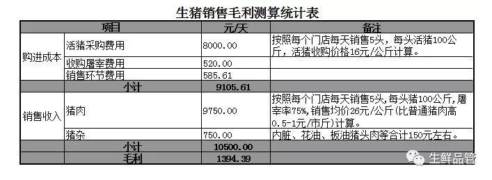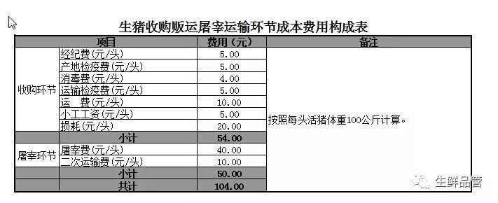 生猪屠宰加工销售各环节费用测算模板 6年前 (2019-09-23) 分类:好文收藏 阅读(3181) 本篇文章来源于微信公众号: 生鲜品管 未经允许不得转载:追梦的大鹏 » 生猪屠宰加工销售各环节费用测算模板