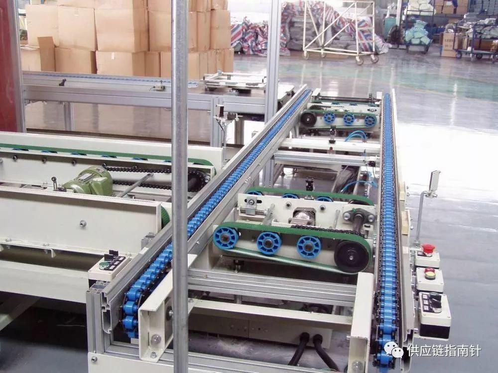 链条输送机的输送能力大,主要输送托盘、大型周转箱等。输送链条结构形式多样,并且有多种附件,易于实现积放输送,可用做装配生产线或作为物料的储存输送。链条输送机是通过驱动链轮与链条相啮合使链条实现运行。所以,不像带传动那样会存在有弹性滑动,保证了链条输送机输送速度的正确和稳定,能保证精确的同步输送。因此,在自动化生产过程中常利用这一特点来控制生产流水线的节拍。