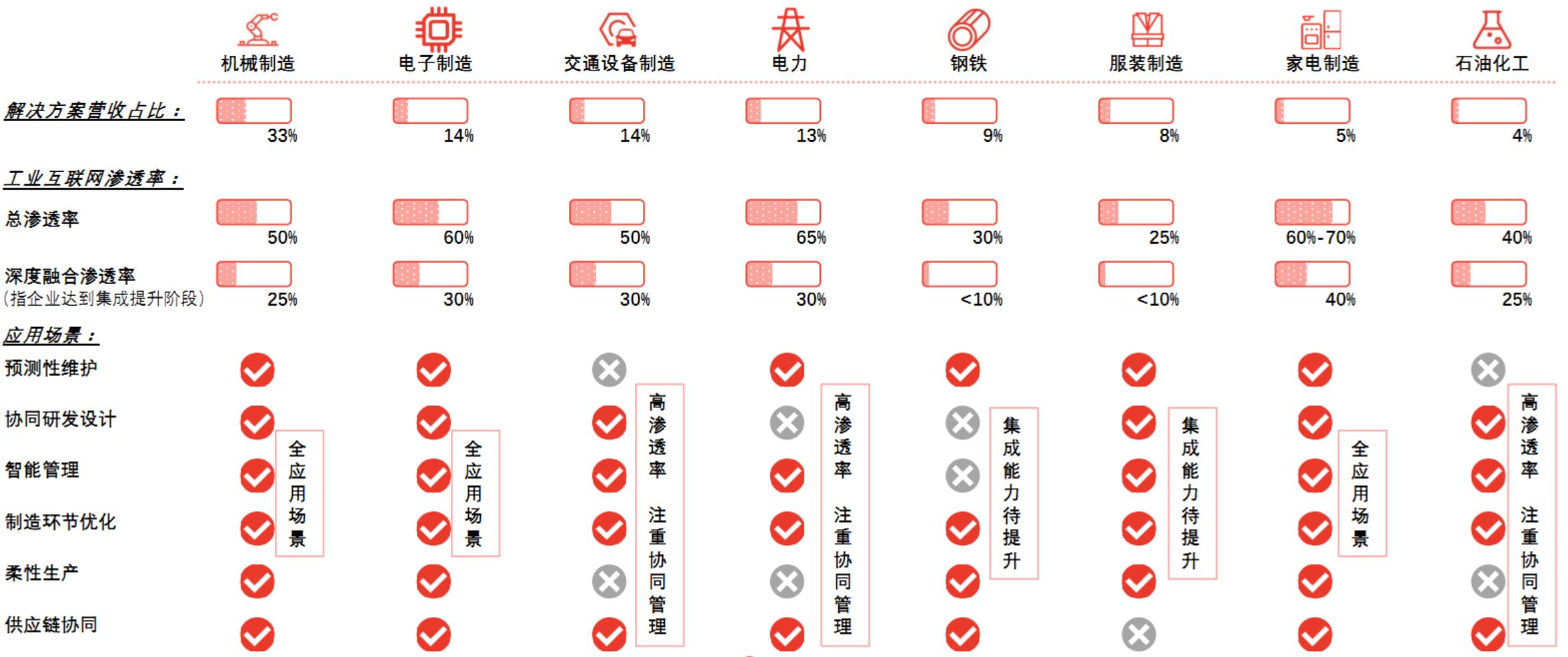 中国工业互联网应用主要集中于机械制造、电子制造、交通设备制造、电力、钢铁、服装制造、石油化工、家电制造等8个行业