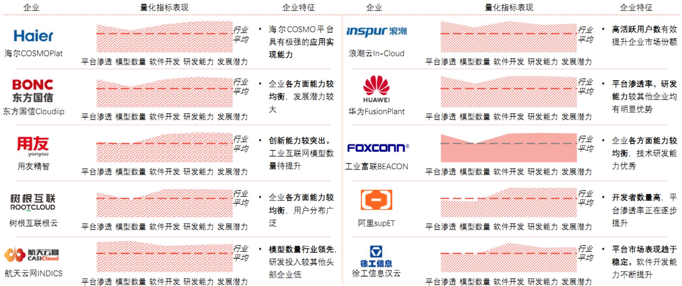 中国工业互联网头部竞争格局包括海尔集团、东方国信、用友网络、树根互联、航天云网、浪潮集团、华为、工业富联、阿里云、徐工信息等10家企业