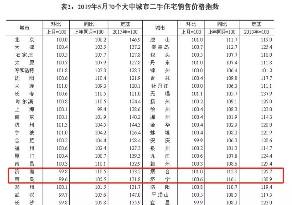 18日上午,国家统计局发布了《2019年5月份70个大中城市商品住宅销售价格变动情况》,在新房价格方面,济南环比上涨0.4%,同比上涨18.3%;二手房价格方面,5月份,济南二手房价格环比继续略有下降,5月份,济南二手房价格环比下降0.2%,同比上涨10.5%。